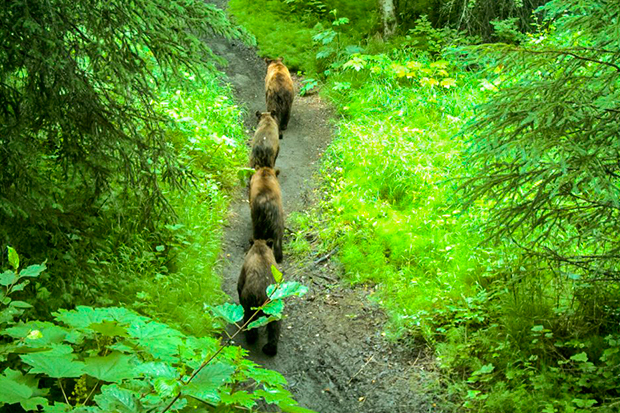 Se no Devil’s Path a presença dos ursos não é tão constante, não podemos dizer o mesmo para o Rover’s Run, no Alasca. Ali os ursos-pardos dão as caras com frequência no verão, quando os rios ficam repletos de salmão. Há diversos registros de ataques de ursos à usuários da trilha, principalmente aos bikers. O percurso na montanha é frequentado tanto por caminhantes, quanto por aqueles que fazem trilhas de bicicleta e esquiadores.